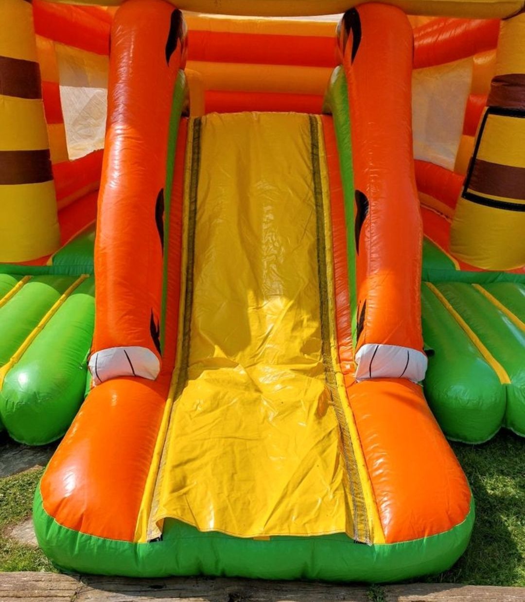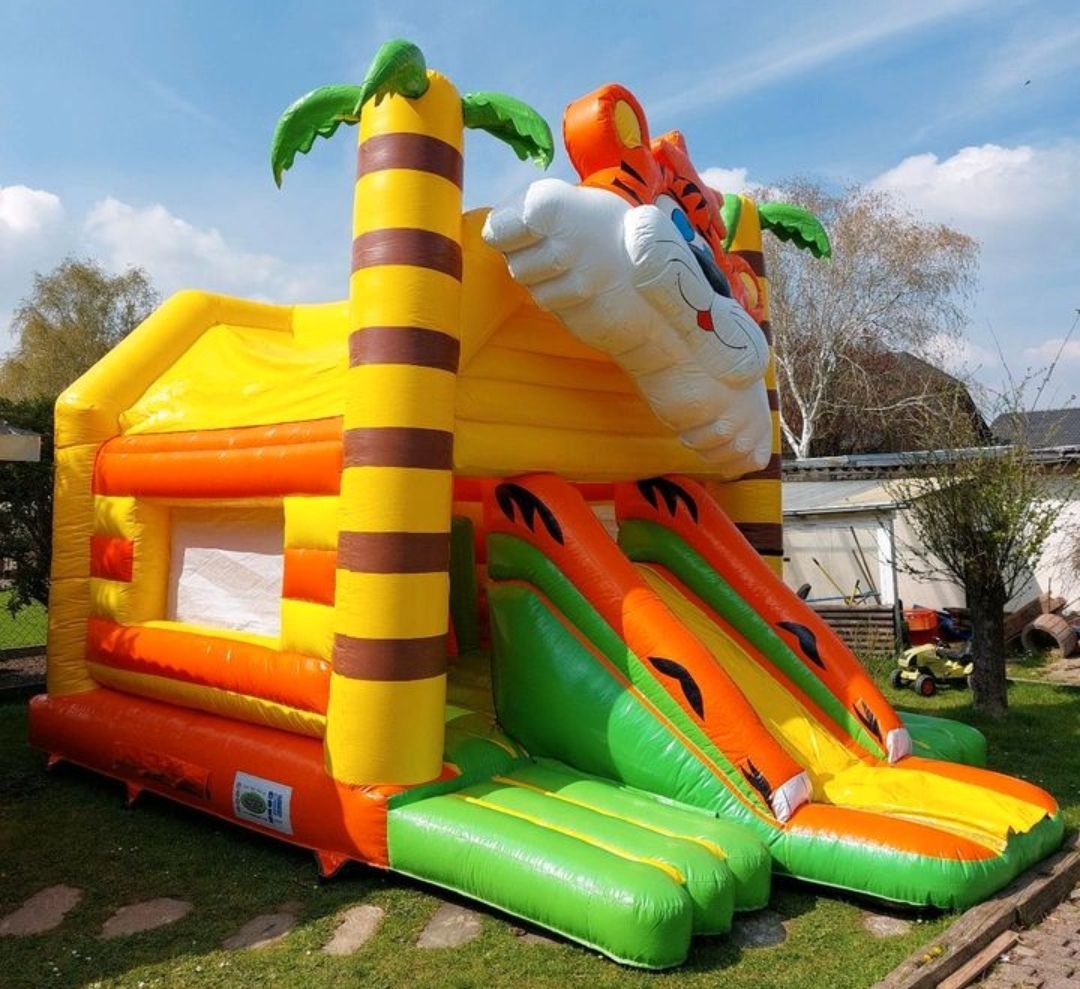 Mieten Sie unsere größte Hüpfburg Tiger mit Rutsche. Diese Hüpfburg mieten Sie für 140€